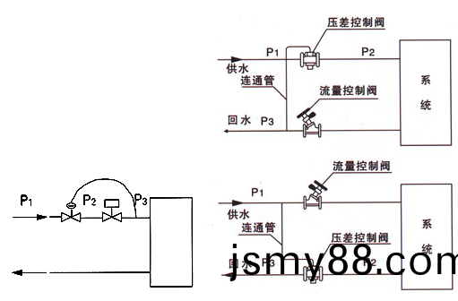 安裝在用戶回(hui)水管上確保用(yong)戶壓(ya)差為恒定值(zhi),圖(tu)中(zhong)①②③為用戶系(xi)統(tong)。