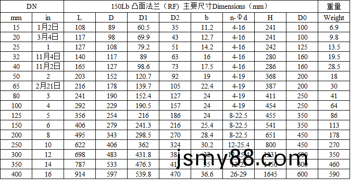 J41H-150LB美標(biāo)(biao)鑄(zhu)鋼(gang)截(jie)止閥(fa)主要(yao)外形尺寸:
