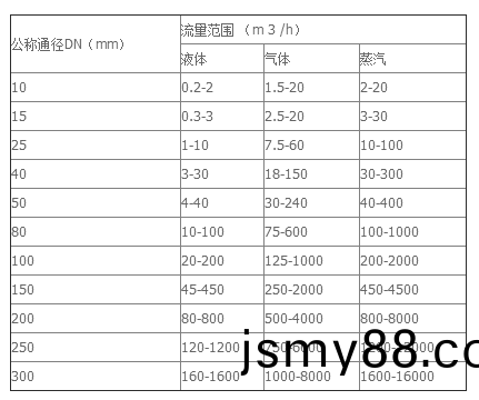 蒸(zheng)汽(qi)渦(wo)街流(liu)量(liang)計(ji)口徑(jing)和流(liu)量選(xuan)型表(biao)