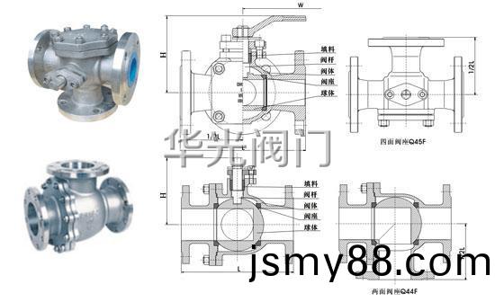 Q45F-16-40P不銹(xiu)鋼三(san)通T型(xing)法蘭(lan)球(qiu)閥(fa)零件(jian)材料: