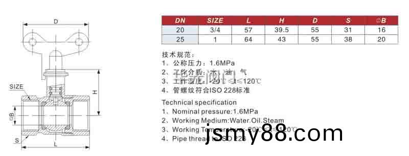 ?????????????????? 公稱(cheng)壓力(li):1.6MPa ?????????????????? 工(gong)作(zuo)介質:水,氣(qi)體(ti)等(deng) 工作(zuo)溫(wen)度(du):-20℃≤t≤110℃ ?????????????????? 管(guan)螺(luo)紋符合(he)ISO 228標(biao)準(zhun) |