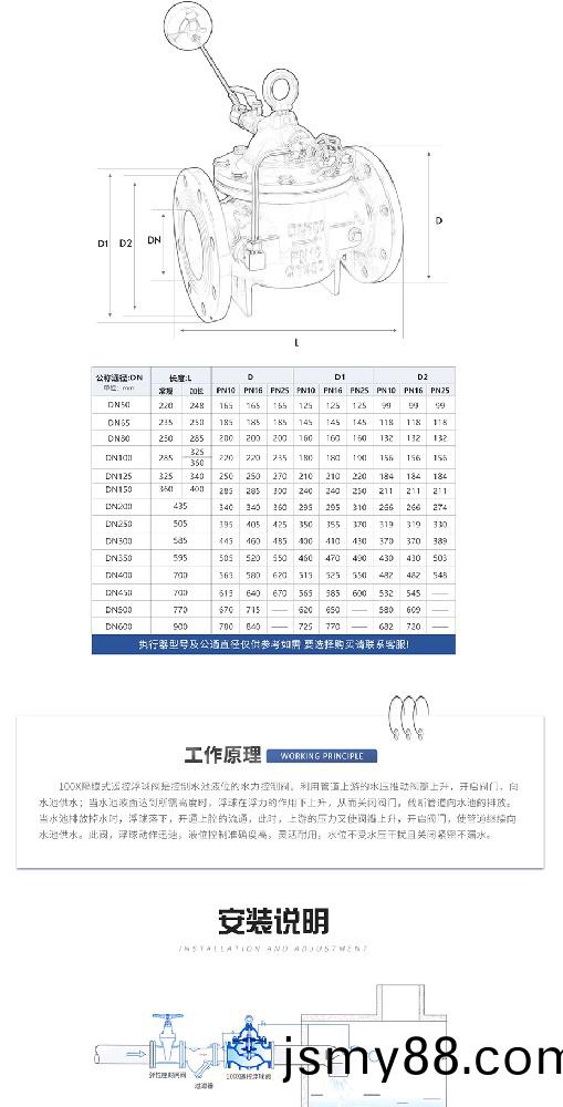 ? ?????100X遙(yao)控(kong)浮(fu)球(qiu)閥使(shi)用(yong)在(zai)控(kong)制水池液位。遙(yao)控(kong)浮(fu)球閥主(zhu)要安裝于水(shui)池或高(gao)架(jia)水(shui)塔的(de)進(jìn)(jin)水(shui)口處,當(dāng)(dang)水(shui)位達(dá)(da)到設(shè)(she)定的(de)高度時(shí),主(zhu)閥由浮球?qū)чy控制關(guān)閉進(jìn)(jin)水(shui)口(kou)停(ting)止供水;當(dāng)(dang)水(shui)位(wei)下降(jiang)后,主閥(fa)由浮(fu)球(qiu)開(kāi)(kai)關(guān)(guan)控制打(da)開(kāi)進(jìn)(jin)水(shui)口(kou)向(xiang)水(shui)池注水(shui),實(shí)(shi)現(xiàn)自動(dòng)補(bǔ)水(shui)。采(cai)購(gòu)(gou)了遙控(kong)浮球閥(fa),我們(men)還(hai)面(mian)臨解(jie)決遙(yao)控浮球(qiu)閥怎(zen)么安(an)裝的問(wèn)(wen)題(ti),在(zai)解答這個(gè)問(wèn)(wen)題(ti)之前(qian),小(xiao)編先(xian)為(wei)你(ni)介(jie)紹下(xia)遙控浮球閥(fa)的工作原(yuan)理(li)。